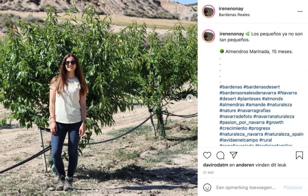 Irene Nonay besloot enkele jaren geleden om de familieboerderij in Noord-Spanje over te nemen. Ze deelt haar dagelijks leven in de amandelvelden op sociale media.