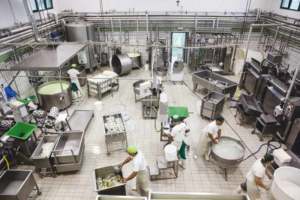 Werknemers maken authentieke mozzarella in een Napolitaanse kaasmakerij. De enige echte mozzarella wordt geproduceerd van buffelmelk en alleen in het noorden en zuiden van Napels, in Caserta en bij Salerno. © Paolo Manzo / NurPhoto