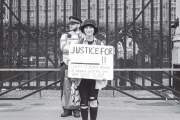 Reader | Protesteren tegen al het onrecht in de wereld kan voelen als een gebed zonder end. Is er eindelijk aandacht voor politiegeweld tegen mensen van kleur, breekt er een brand uit in een overvol vluchtelingenkamp op een Grieks eiland. En wat te doen met al die bosbranden en de alsmaar toenemende klimaatverandering (sinds wanneer is het 30 graden in september?!). Om moedeloos van te worden. Deze Londense demonstrant gaf uiting aan dit gevoel, met een kwinkslag. Volgend jaar heeft ze waarschijnlijk weer een reden om de straat op te gaan, want dan staat de wereld nog steeds in brand.
