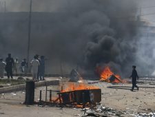 Nadat Khan werd veroordeeld, publiceerden zijn advocaten een vooraf opgenomen video waarin hij zijn aanhangers opriep vreedzaam te demonstreren tegen de veroordeling. Daar is minder massaal gehoor aan gegeven dan eerder dit jaar, toen tienduizenden Pakistanen in Islamabad de straat op gingen om te betogen tegen de arrestatie.